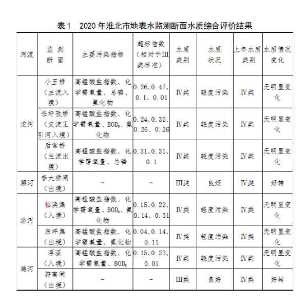 2020年日博和365是一样的么_365app官网下载_365直播平台app下载各河流各断面水质综合评价结果见表1,2020年地表水水质类别分布见图3。